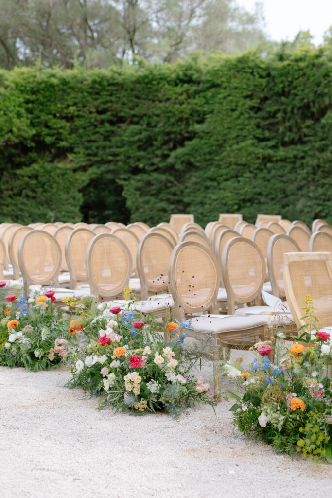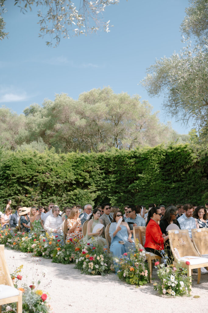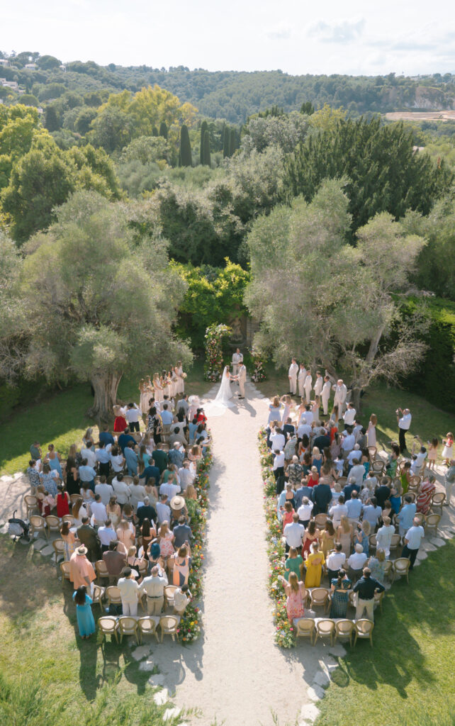 From above, the ceremony layout was breathtaking. Symmetrical, intimate, and framed perfectly by greenery. This ceremony location is one of the reasons Bastide Du Roy weddings photograph so beautifully from every angle.