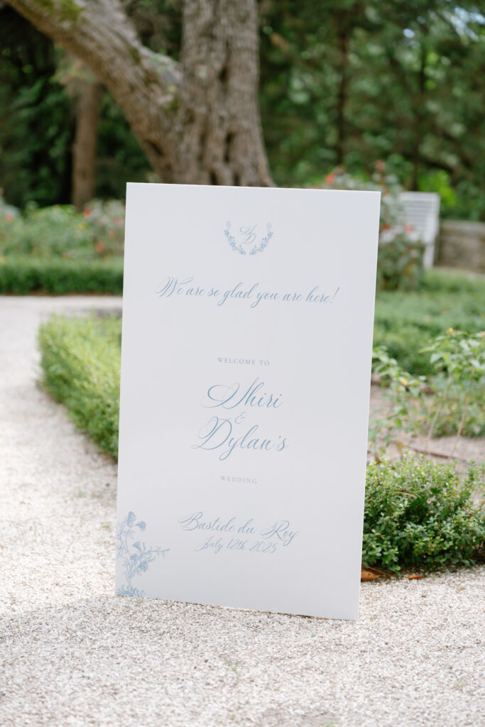 The design details of the day were refined and beautifully cohesive. Stationery by Agence MDF introduced a soft blue palette that flowed throughout the wedding, from menus and place settings to the escort card display.