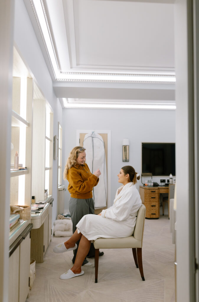 Alina began her wedding morning at the iconic Claridge’s, a favourite location for elegant London bridal preparations. Natural light poured into the suite, creating the perfect setting for relaxed, editorial getting ready photographs.