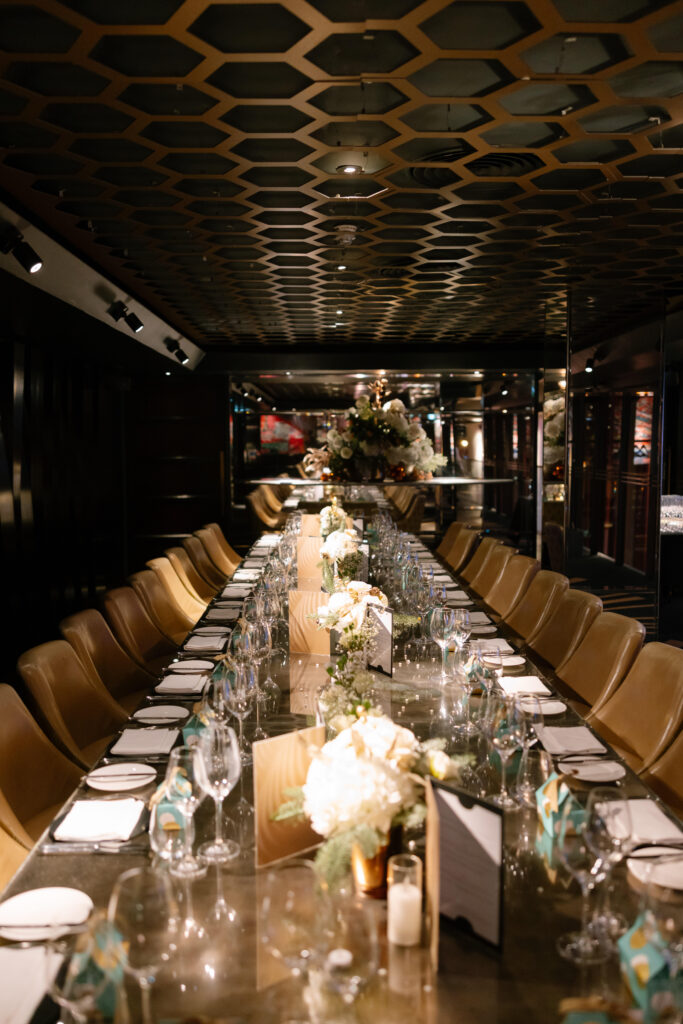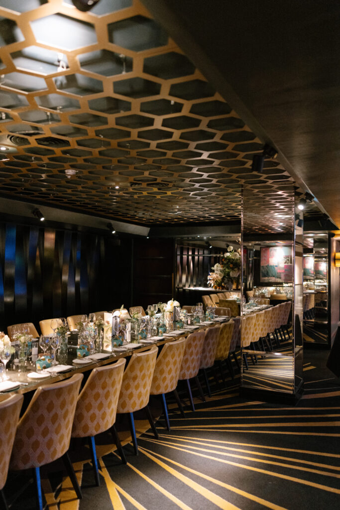 Following their ceremony and portraits, Alina and Shea celebrated with dinner at Quaglino’s. This classic London restaurant was the perfect choice for a festive wedding reception, combining glamorous interiors with a warm, celebratory atmosphere.