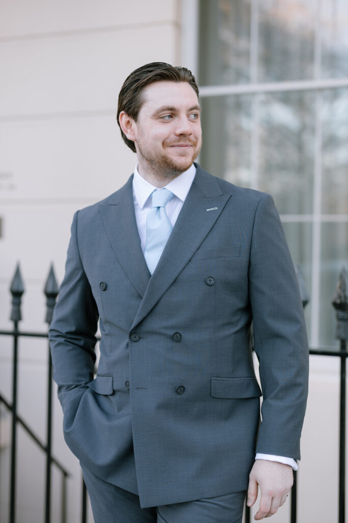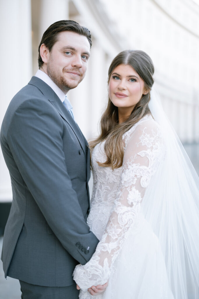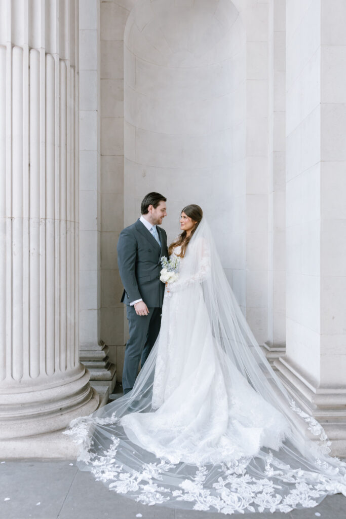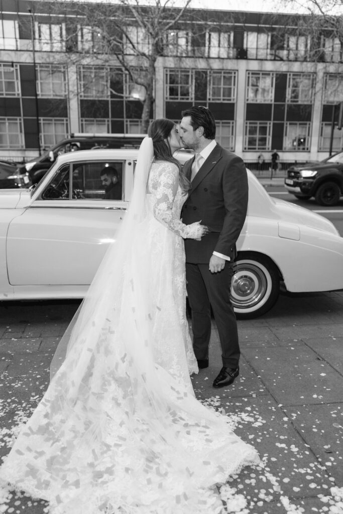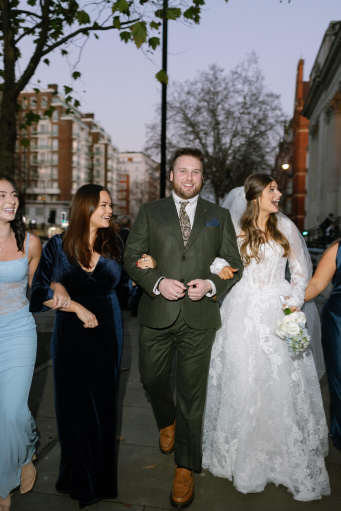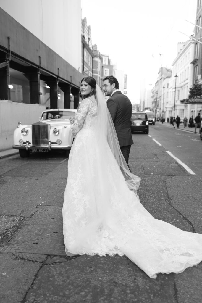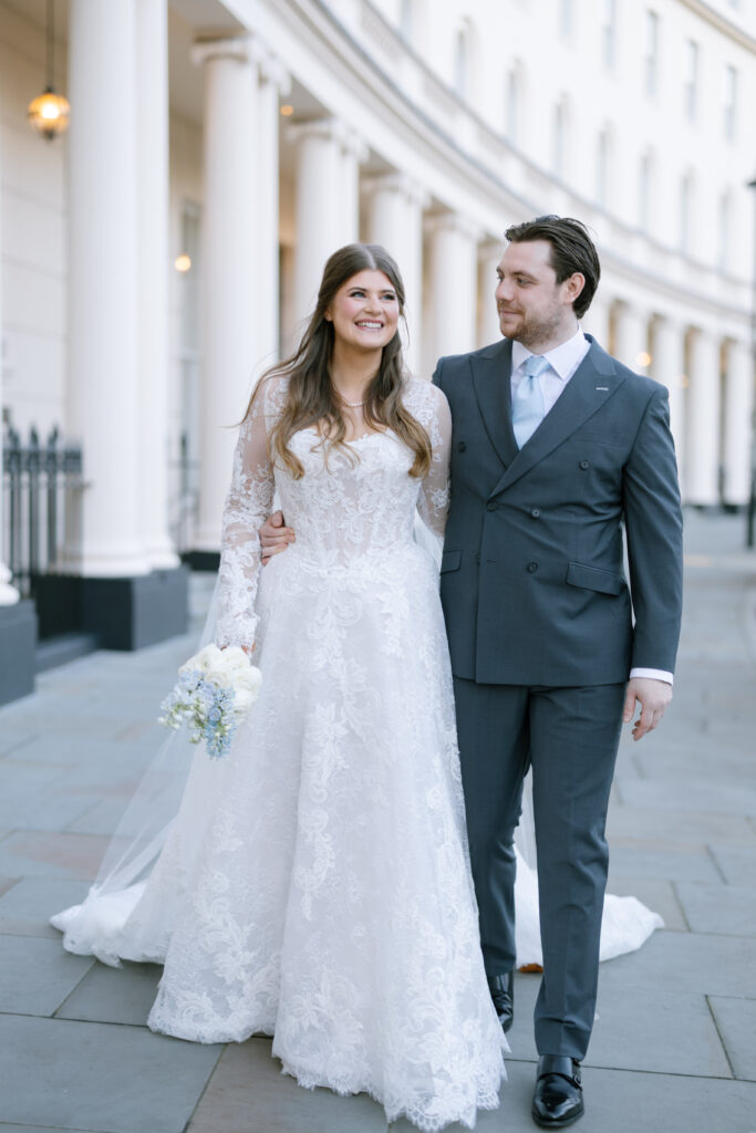 After the ceremony, we captured relaxed couple portraits around Marylebone. Winter weddings here have a unique charm, soft light, quieter streets, and elegant architecture at every turn. Alina and Shea were completely at ease together, making the portraits feel natural, romantic, and true to them.