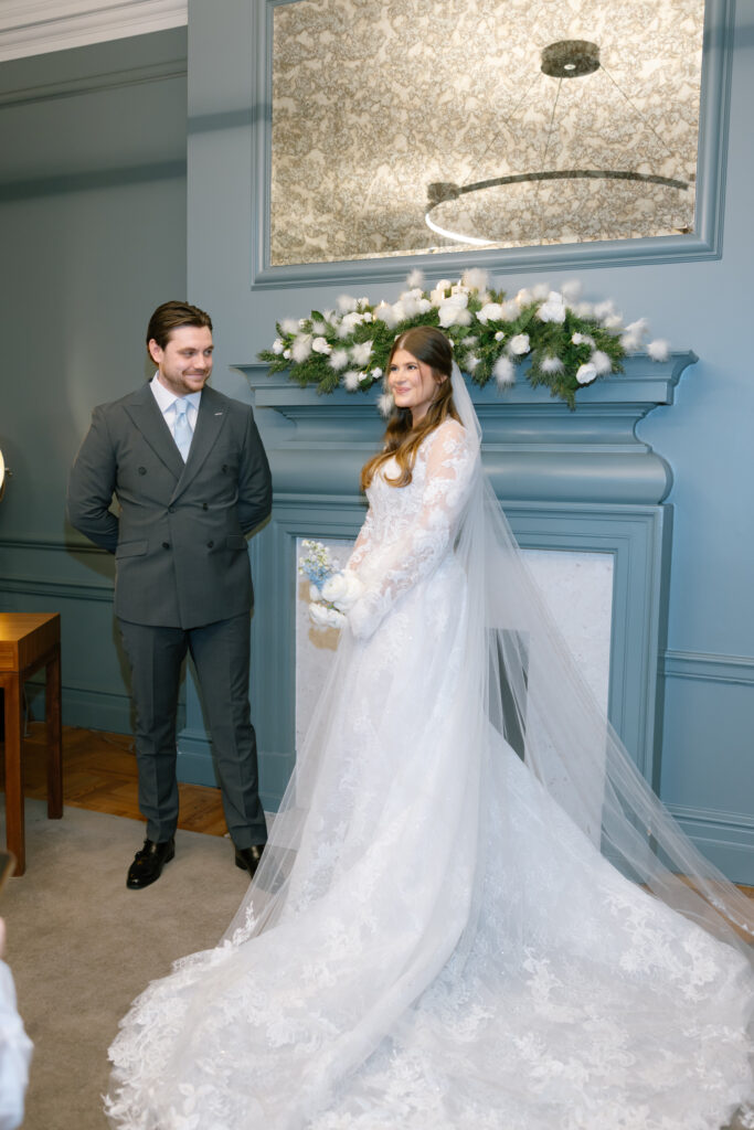 The ceremony took place at the ever popular Old Marylebone Town Hall, one of London’s most iconic registry offices. In the days leading up to Christmas, the surrounding streets had an extra sense of excitement, making the whole experience feel even more special.