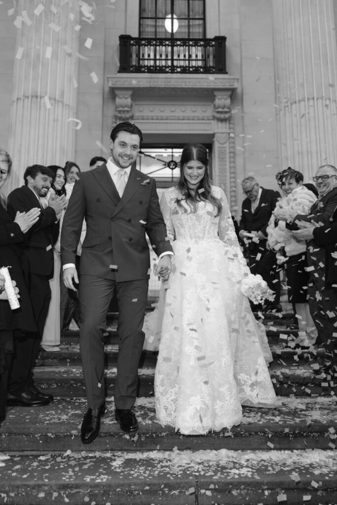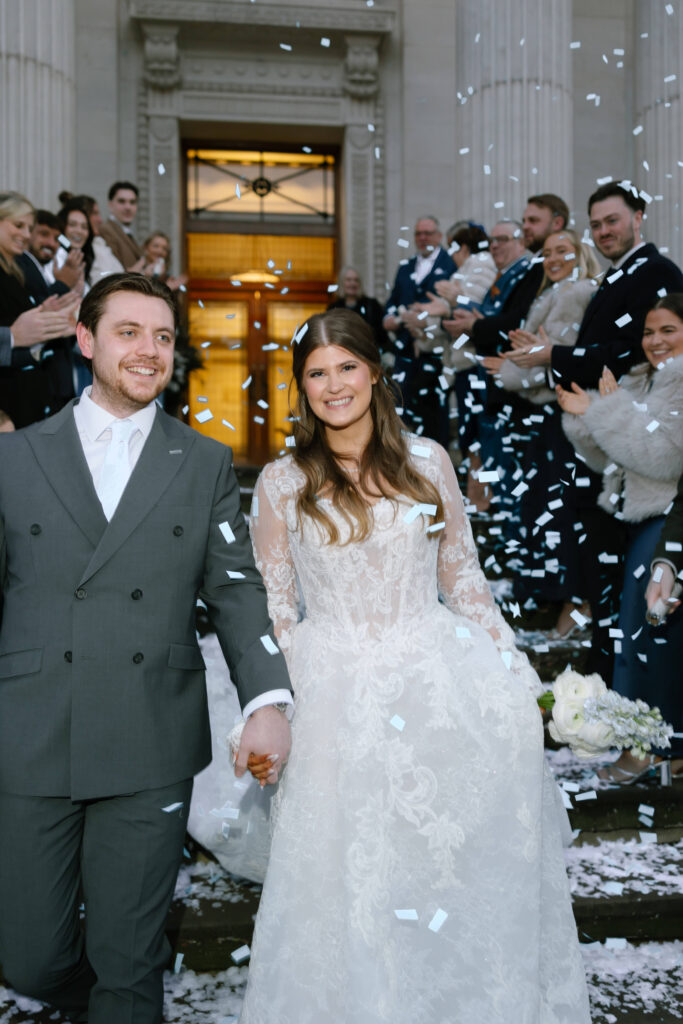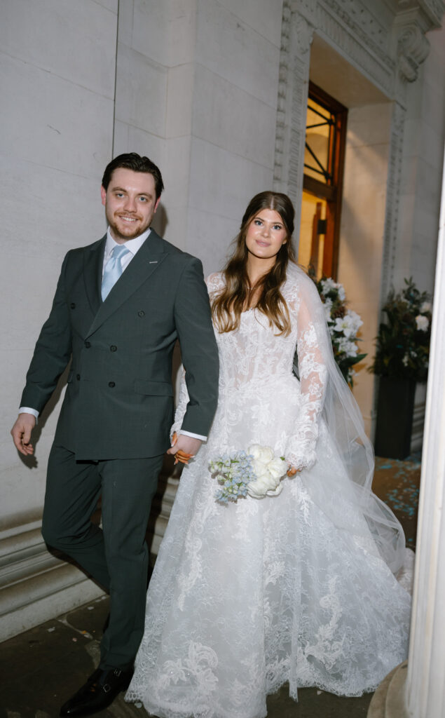 Old Marylebone Town Hall is ideal for couples wanting a stylish city wedding. Its grand exterior, light filled rooms, and central location make it one of the best choices for modern London weddings. Alina and Shea’s ceremony was intimate, emotional, and full of warmth, a beautiful contrast to the crisp winter air outside.