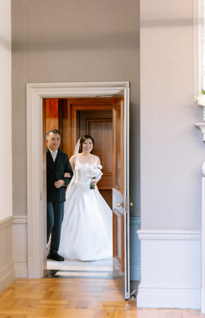 Old Marylebone Town Hall is one of London’s most sought-after wedding venues, known for its timeless architecture, grand columns, and soft neutral tones that lend themselves perfectly to romantic and editorial wedding photography. Haley and Travis chose this iconic London setting for its understated luxury and classic feel, and it could not have suited them more.