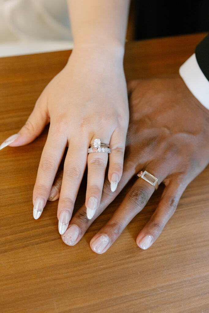 Travis opted for a sharp black-tie tuxedo, bringing a modern yet traditional feel to the day. One of my favourite details was their matching manicures, a subtle but meaningful nod to their connection and shared sense of fun. These small, intentional details are what elevate a wedding day and add so much depth to the story being told through photographs.